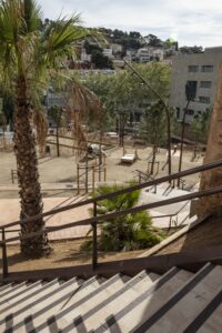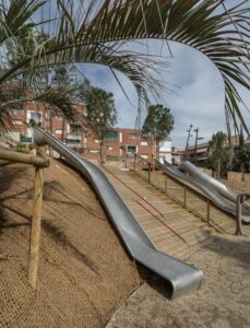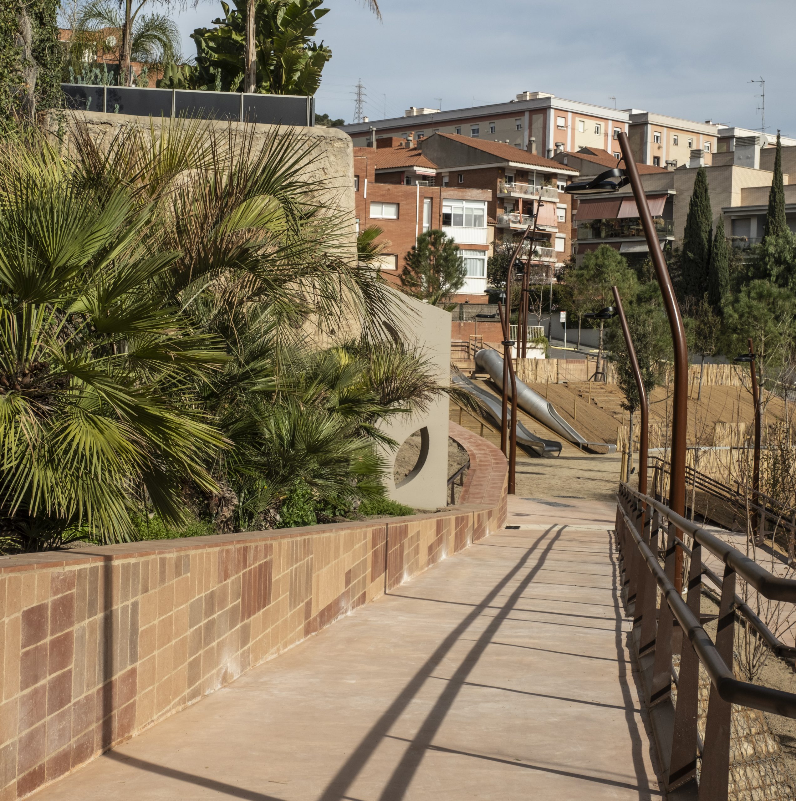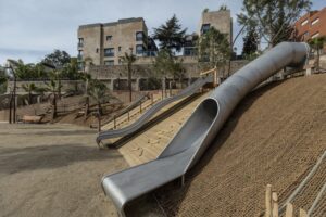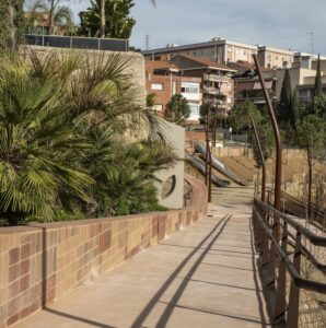 The project, with an investment of €2 million, began at the end of 2022 and was completed by mid-March of this year. This new green space features 2000 meters of resting and children’s play areas where slides, seating, and integrated stairs have been installed, connecting with internal routes that link different levels to take advantage of the two-meter slope of the terrain. Additionally, the gardens have improved connectivity between Anna Piferrer, Otília Castellví, and Cesare Cantú streets, with new pathways and access ramps.