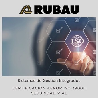 RUBAU has obtained the AENOR ISO 39001 Road Traffic Safety certification for its road maintenance and operation activities. This recognition, achieved on March 20th, certifies our commitment to road safety in the travel and roadwork activities we carry out every day.